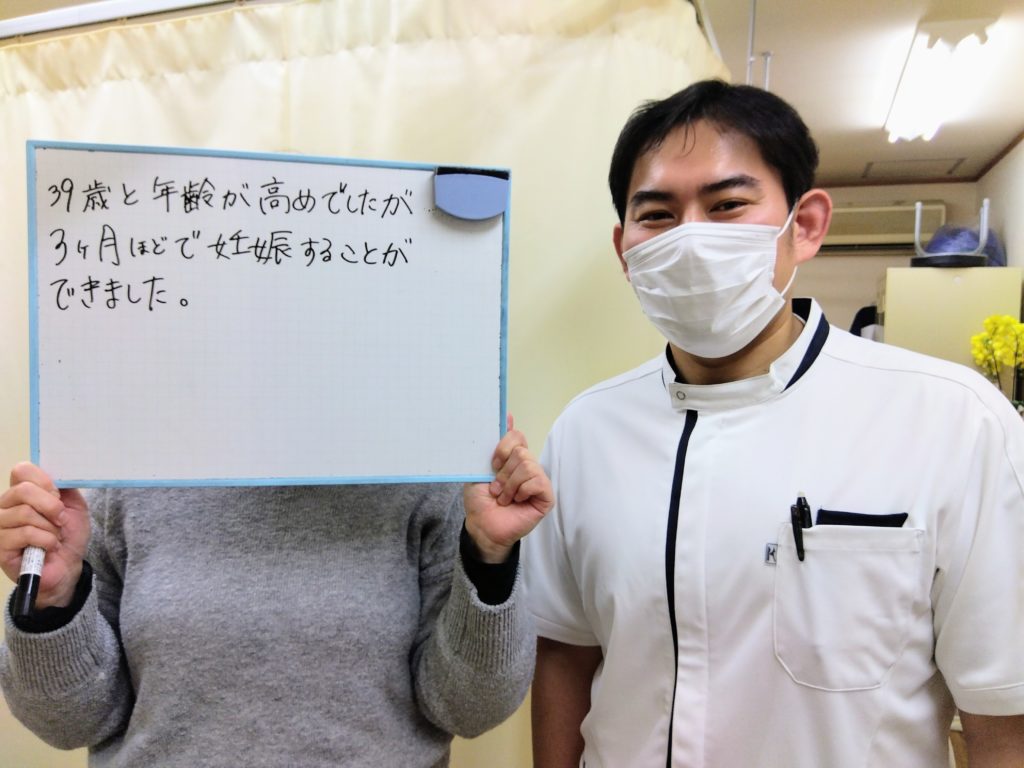 39歳と年齢が高めの妊娠でしたが、施術を続けたおかげで、妊娠力があがったのでは?と思っています。