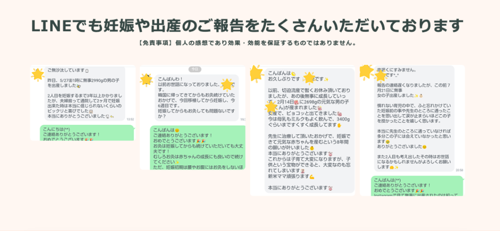 また妊活に関しての悩みや相談も口頭やLINEで気軽にできました。