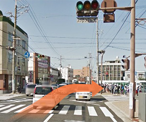 ヤマダ電機を超えた最初の信号を右に曲がります。