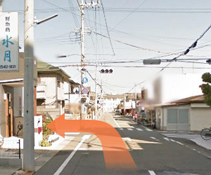 二つ目のこの筋を右に曲がると矢野鍼灸整骨院です!