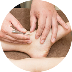 探し出した「生きたツボ」に、てい鍼という先の丸い押さえるだけで改善できるはりで施術をしていきます。